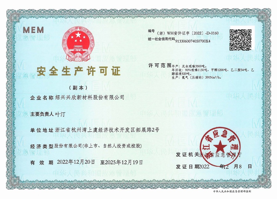 Shaoxing Xingxin New Materials Co., Ltd. was established in June 27, 2002, with an area of 81,374 square meters. Now, we are located at No.2 Tuozhan road of Hangzhou Bay Shangyu Economic and Technological Development Zone, with more than 200 employees (over 50 technicians) and a knowledge-based and professional technical research team composed of more than 30 doctoral and master students. Aiming for the global market, our company is a province-level technological enterprise specializing in the development of electronic chemicals, environment-friendly chemicals, pharmaceutical intermediates, high molecule materials and other advanced new materials. At present, we have two production bases such as Zhejiang Shangyu and Anhui Dongzhi.